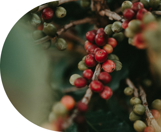 After about two years, coffee plants produce fruits called cherries, each of which contains two seeds. Once the cherries ripen from pale green to a deep shade of red, they are ready to be harvested. Each cherry is picked by hand, making harvesting a time- and labor-intensive task.
